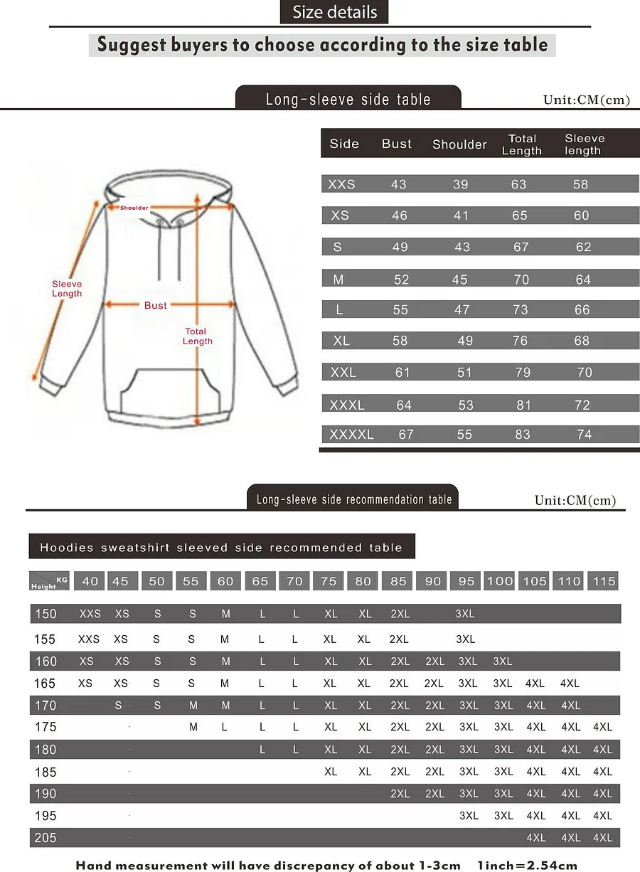 Size reference (Normal deviation 2-3 CM)